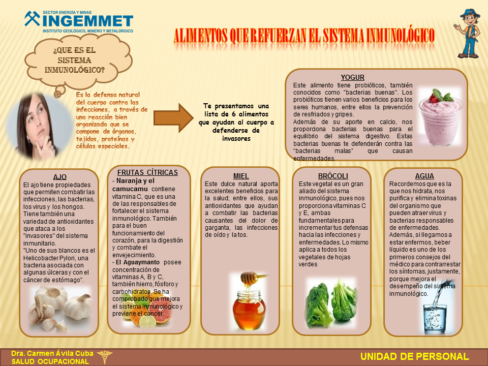 Atrás Alimentos que Fortalecen el Sistema Inmunológico Te presentamos una lista de 6 alimentos que ayudan al cuerpo a defenderse de invasores. (de CLICK para ampliar la imagen)