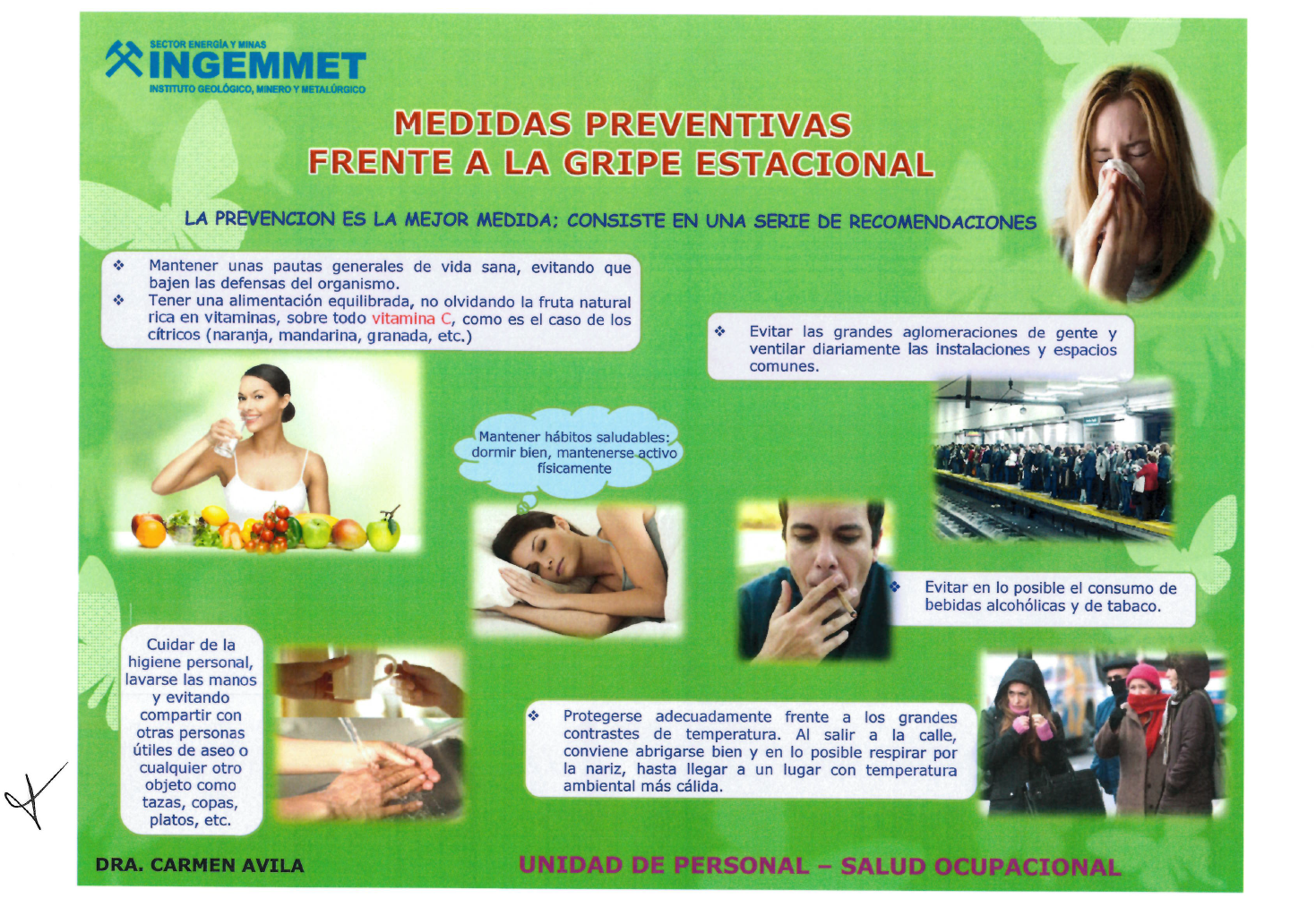 Atrás Medidas Preventivas Frente a la Gripe Estacional La prevención es la mejor medida; consiste en una serie de recomendaciones (de CLICK para ampliar la imagen)