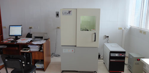 El Tubo de Rayos X consta de un ánodo de Cobre (Cu) y una ventana de Berilio (Be), a su vez esta anexado a colimadores, que permiten direccional la radiación.Trabaja a 40 kV y 30 mA.