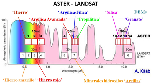 Estas características posicionan al sensor ASTER respecto de los sensores TM y ETM, como muy ventajoso en aplicaciones geológicas y geo-ambientales, como complemento en la generación de mapas de riesgo geológico, cartografía de deslizamientos, erosión y sedimentación costera, entre otros.