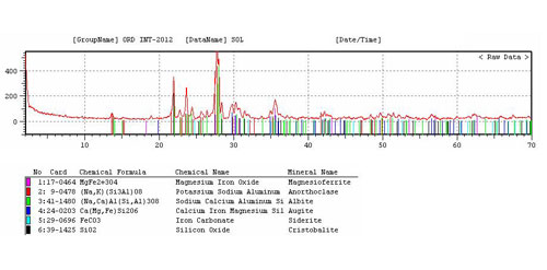 Análisis cualitativo y semicuantitativo de la muestra. El análisis cualitativo consiste en la relación de los minerales identificados en la muestra con su respectiva formula química, y el análisis semicuantitativo consta del porcentaje de dichos minerales contenidos en la muestra.