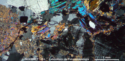 La descripción microscópica consiste en la determinación y descripción de los minerales constituyentes de la roca, las asociaciones, aspectos texturales, secuencias de formación mineral, porcentajes cualitativos, alteraciones y finalmente la clasificación de la roca.