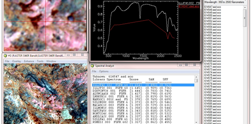 - Análisis SIG : En el cual se combina la información obtenida de las imágenes satelitales con los datos temáticos obtenidos de otras fuentes como: geología, geofísica, geoquímica, , entre otros, haciendo uso de las herramientas de análisis proporcionadas por los Sistemas de Información Geográfica (SIG), para el análisis espacial de diferentes parámetros geoambientales que contribuyan a la toma de decisiones.