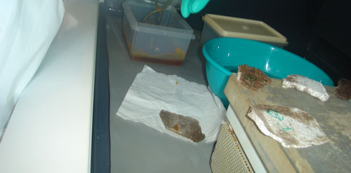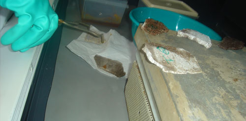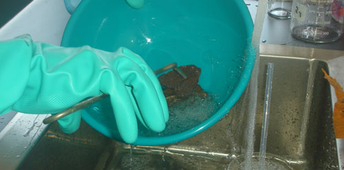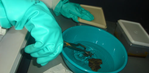 En algunos casos puede ser conveniente teñir alguno de los minerales de la muestra, con el fin de facilitar su identificación o para potenciar la observación de determinadas estructuras.